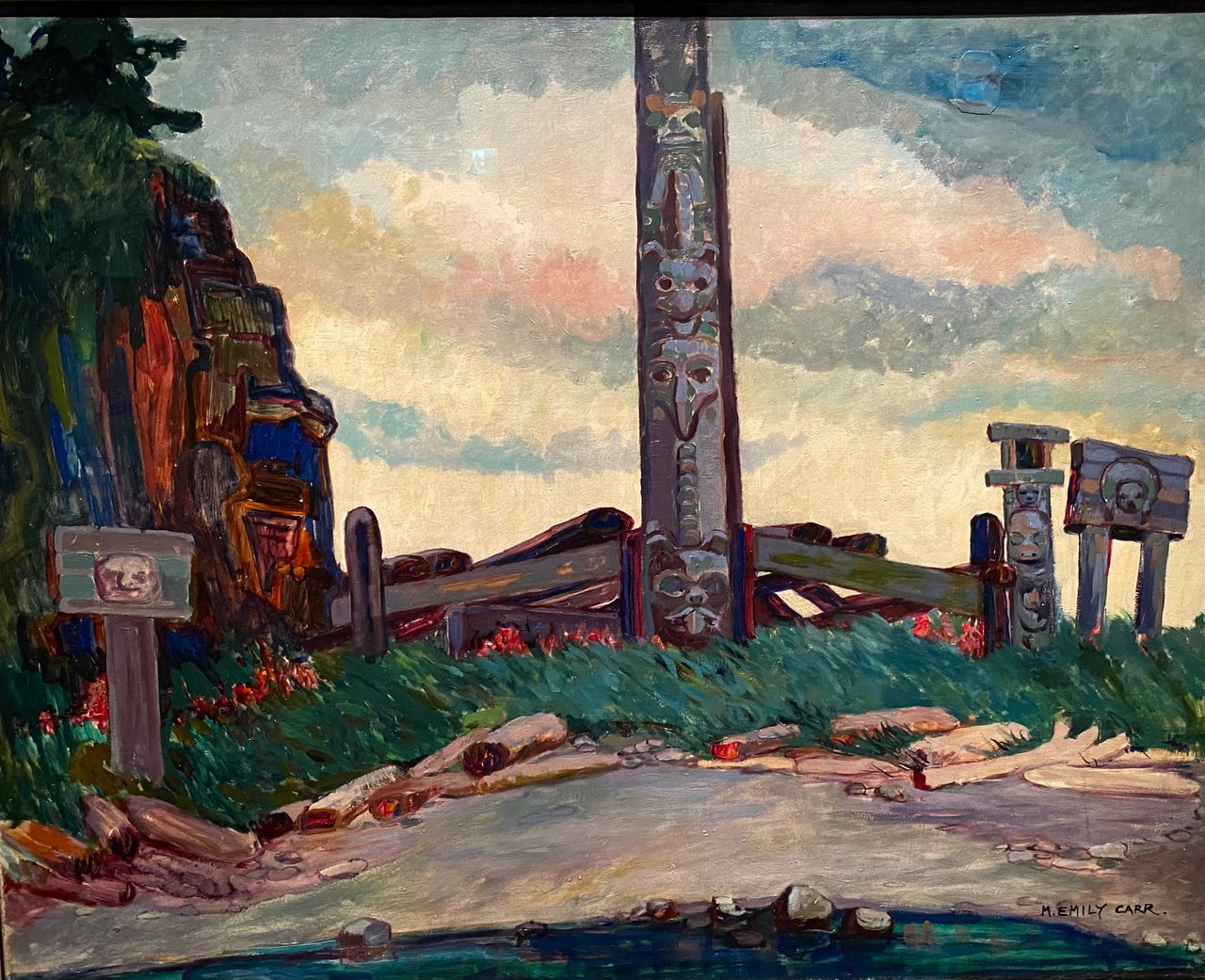 Today, visitors to British Columbia can trace Carr’s footsteps through the homes and streets where she lived and worked. In Victoria, her childhood home has been preserved as the Emily Carr House -a National Historic Site-, offering a glimpse into the early years of this remarkable artist’s life. The streets of Vancouver are dotted with galleries showcasing her work, a testament to her enduring legacy in the Canadian art world. The Art Gallery of Greater Victoria (AGGV) has a notable collection of Emily Carr’s works. In fact, they hold one of the largest public collections of her paintings, drawings, and sketches. The gallery often displays a rotating selection of her art, offering insights into different phases of her career—from her early watercolours to her later iconic First Nation scenes.