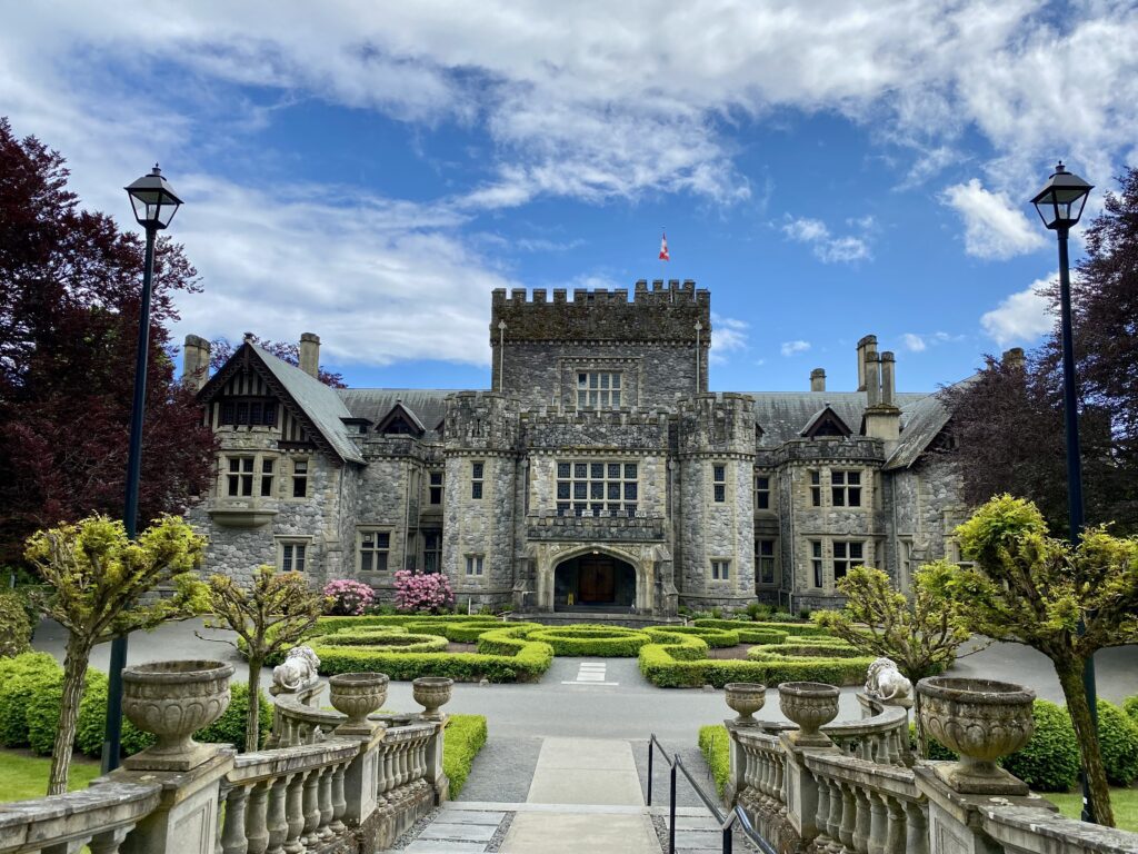 Located just outside Victoria at Royal Roads University, Hatley Castle was built by James Dunsmuir, the son of Robert Dunsmuir of Craigdarroch fame.